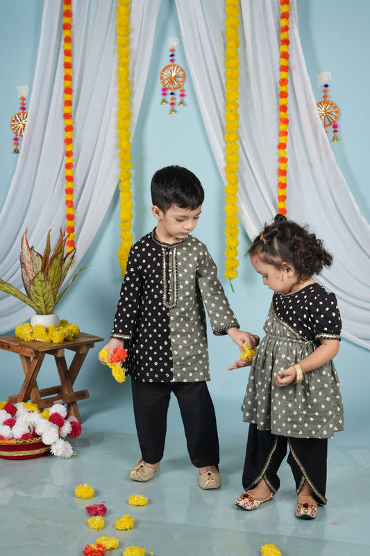 Charcoal & Us Twinning Set| Kurta Set for Boys & Angrakha set for Girls