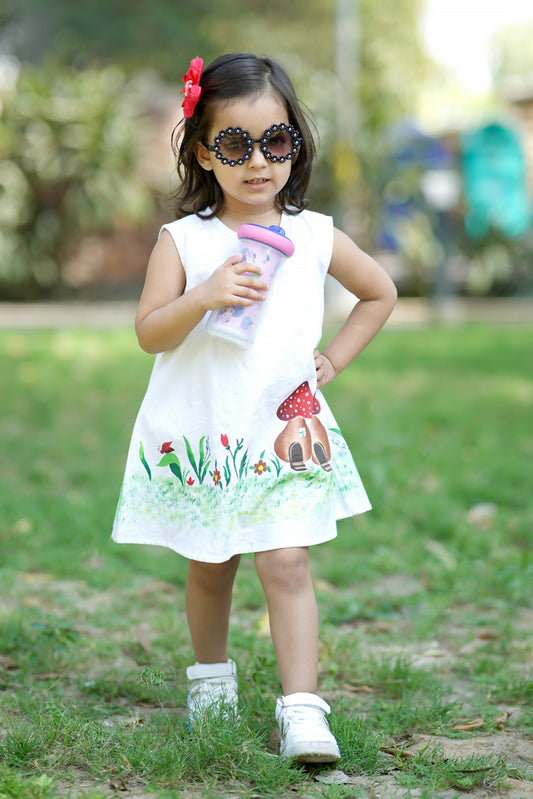 Cuddly Cubs Mushroom Meadow Hand Painted A Line Dress