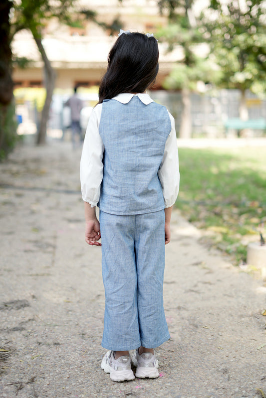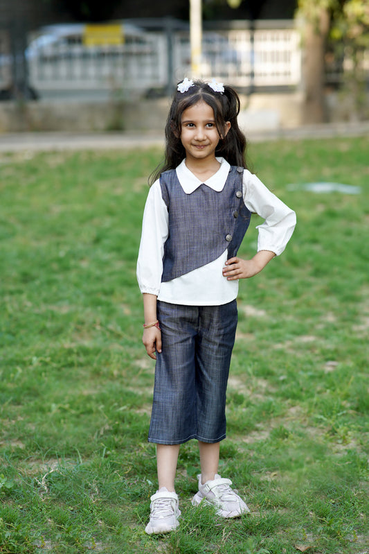 Cuddly Cubs Indigo Blossom Denim Co-ord Set with White Collared Top