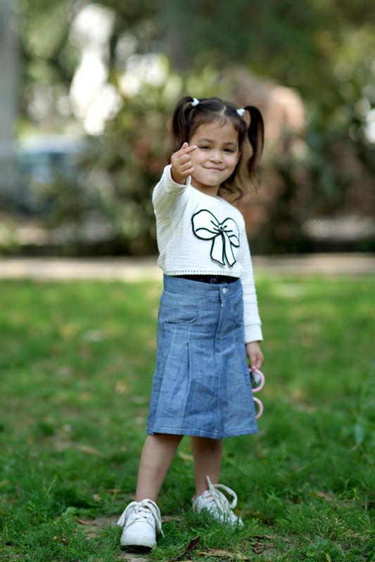 Cuddly Cubs Indigo High Waisted Cotton Denim flared Skirt