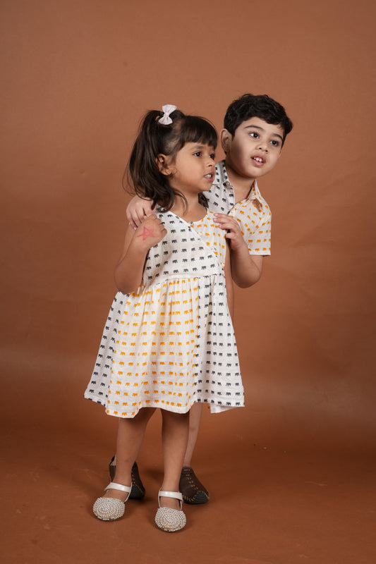 Tusk & Giggles Twinning Set| Co-ord Set for Boys & Frock for Girls