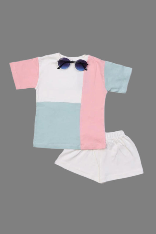 Colorblock playset with mint shorts- Supima cotton Loose Fit T-shirt & Shorts set
