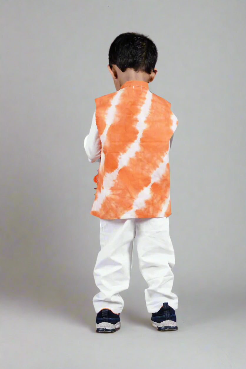 Unleash your little one's fashion sense with this groovy Orange Blaze Tie-Dye Jacket! Crafted from 100% cotton, it's versatile for any outing, whether it's teamed with denim or a kurta pyjama. Let your kid express themselves with this one-of-a-kind jacket that's sure to catch everyone's eye!!